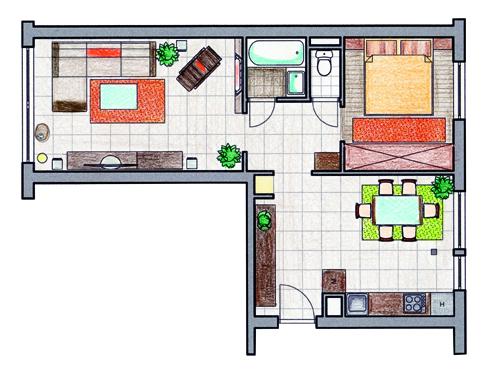 | Egy nagyon kényelmes 2 szobás lakás, az eredeti szűk helyiségekre szabdalt panelből. |