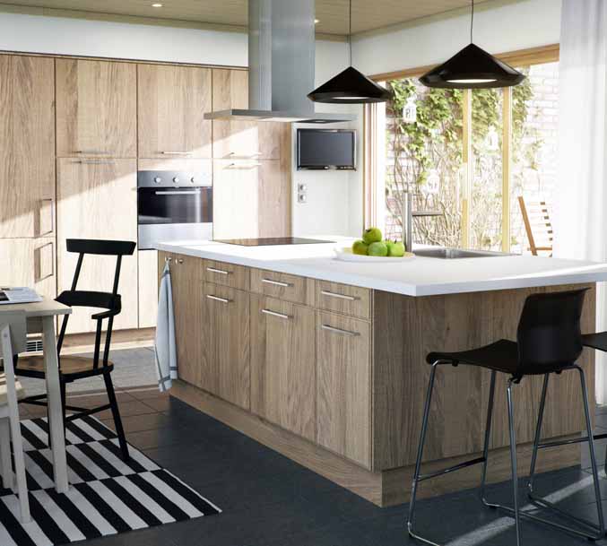 Nem egy túl izgalmas megoldás, de minél tovább nézem, annál jobban tetszik. Mert okos, mert minden a helyén van. Szeretem a beépített konyhafalat, ami rengeteg tárolót jelent, és hozzá a hatalmas, körbejárható konyhaszigetet a bőséges pultfelülettel, a beáradó fényt, a remek padlót. Az étkező elhelyezése is kiválóan tervezett, illik egy családi konyhába. A fa ajtólapok a valóságban sokkal szebbek (IKEA Norje). 9/10