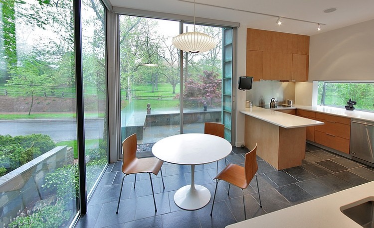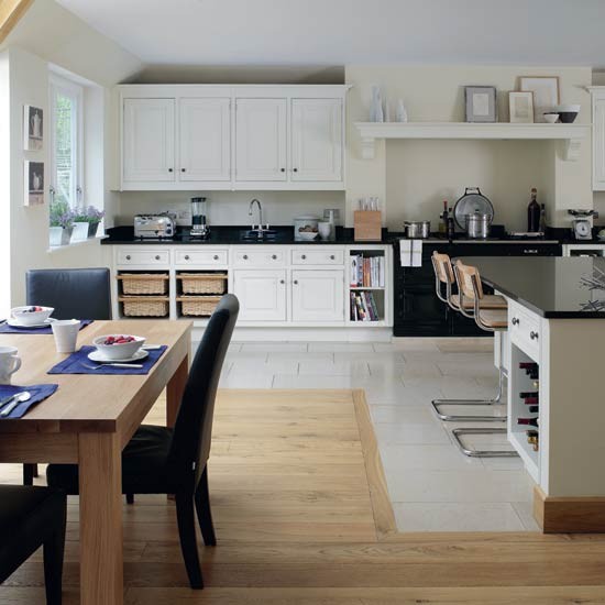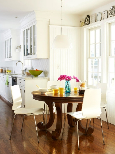 Néhány nagyvonalú megoldás a konyhai étkezésre (a bemutatott példákban a fapadló nagyon nem tetszik, helyette én mindenhová konyhába alkalmas burkolatot keresnék!):